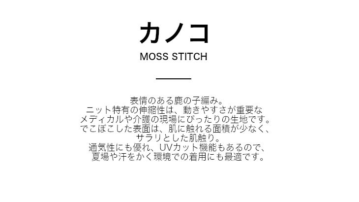 ニット特有の伸縮性は、動きやすさが重要なメディカルや介護の現場にぴったりの生地です。