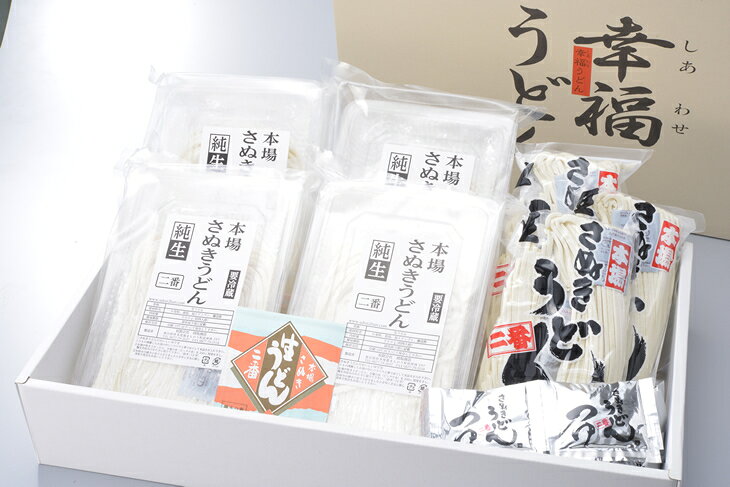 【ふるさと納税】岡坂商店 本場讃岐うどん「二番」食べ比べ 幸福セット 純生&半生タイプ 純生500g×4、半生300g×3 めんつゆ付 21食分